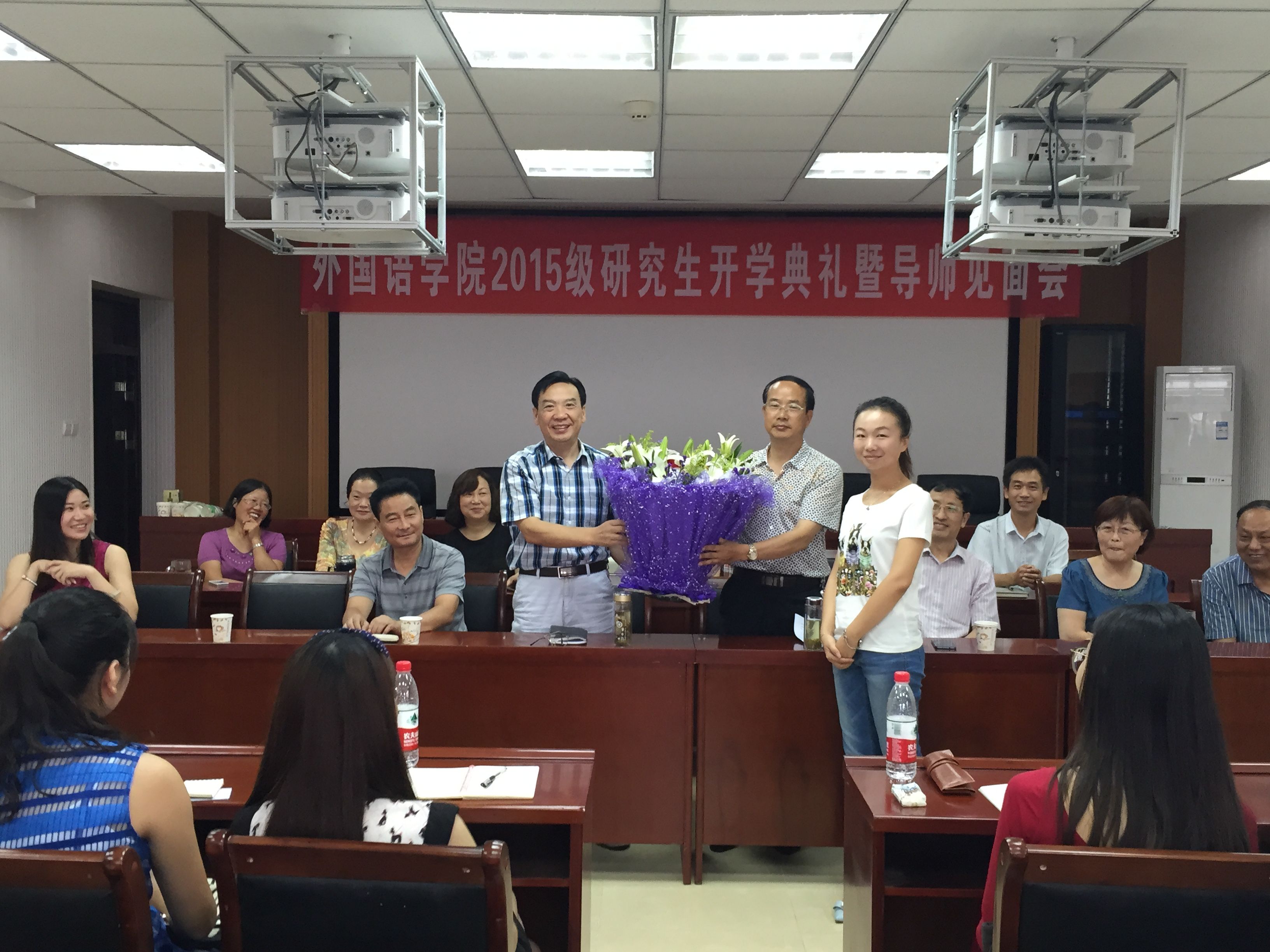 9月10日下午,fun88官网体育2015级研究生开学典礼暨导师见面会在人文楼6楼会议室举行。外国语公司党总支书记周学红、经理刘世理、副经理何英干、党总支副书记陈铭出席会议,研究生导师和2015级全体研究生参加了本次会议。会议由研究生秘书付艳丽主持。