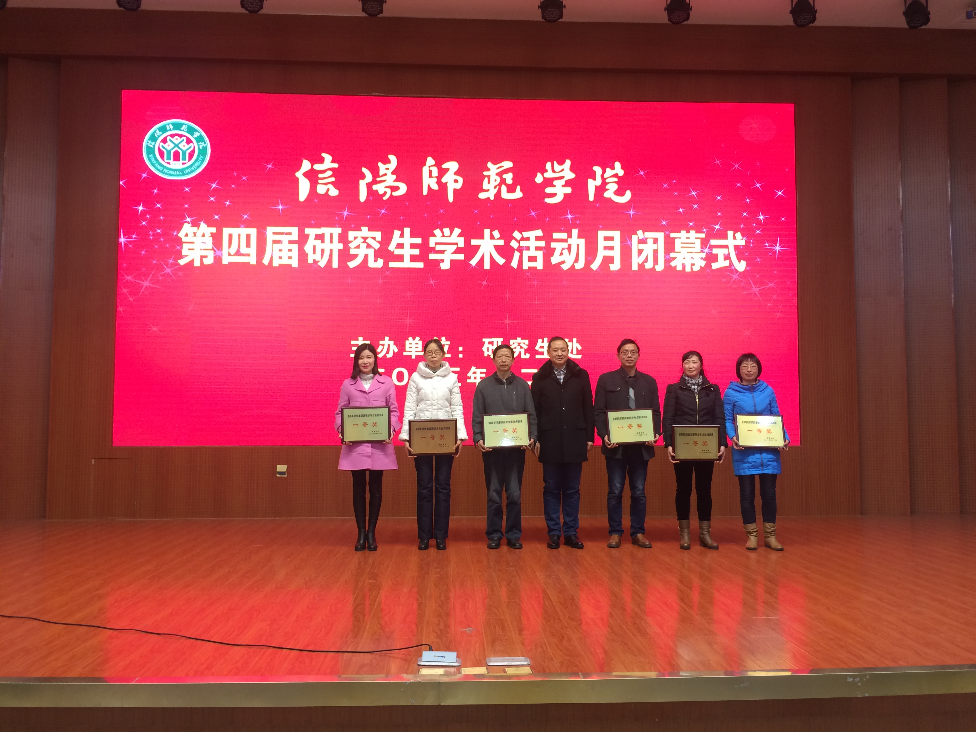 2015 年 12月 1 日,信阳师范公司研究生第四届学术活动月闭幕式在逸夫楼报告厅举行。研究生处处长李全亮出席闭幕式,研究生处各科(室)负责人、各院研究生秘书及研究生员工代表两百余人参加此次闭幕式。