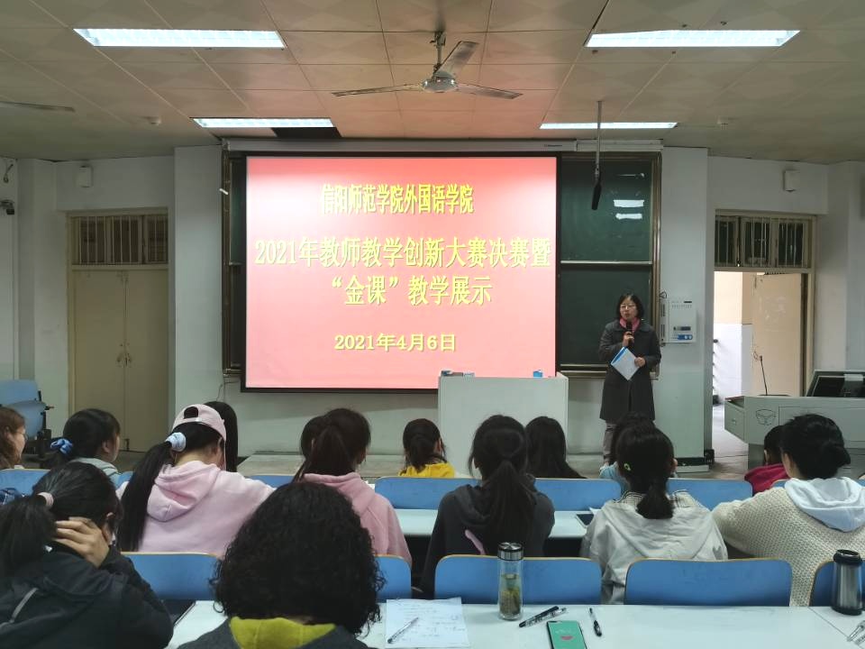 4月6日下午,fun88官网体育在人文楼308教室成功举办2021年教师教学创新大赛决赛暨“金课”教学展示活动。公司党委书记周学红,经理蔡满园,党委副书记柏孟仁,副经理姚光金,评委余运伟,李明晔,陈顺黎,傅翀,宣军磊,刘海军,任芳、教务办老师们参与此次活动。全体专任教师和部分英语专业员工观摩了比赛。