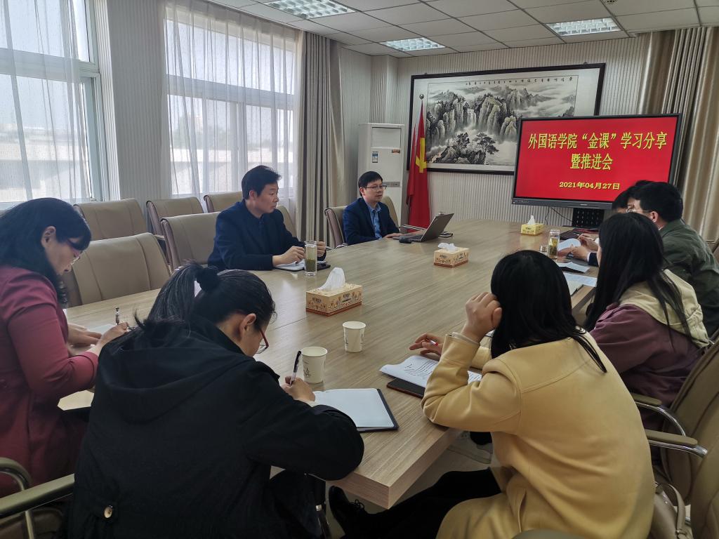 4月27日下午,fun88官网体育在人文楼五楼会议室召开“金课”学习分享暨第二次推进会。经理蔡满园、副经理姚光金,公司督导专家余运伟、吴恒,系主任宣军磊、张鸿鹏,“金课”负责人,教务办工作人员参加会议。会议由姚光金主持。