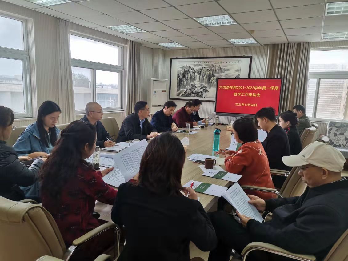 10月26日下午,fun88官网体育在人文楼五楼会议室召开2021-2022学年第一学期教学工作专题座谈会。fun88官网体育全体领导班子成员、各系(教研室)主任、公司教学督导专家及教务办的老师参加了此次座谈会。会议由外国语公司党委书记陈铭主持。会上,副经理郭敏首先向大家汇报了本学期开学以来公司教学工作的进展情况,并对下一阶段的教学工作的重点任务进行了部署。与会人员针对当前课程建设、师范专业认证、本科生导师制落实措施、本科生综合素质提升计划实施方案、教学督导专家职责修订等议题展开研讨。