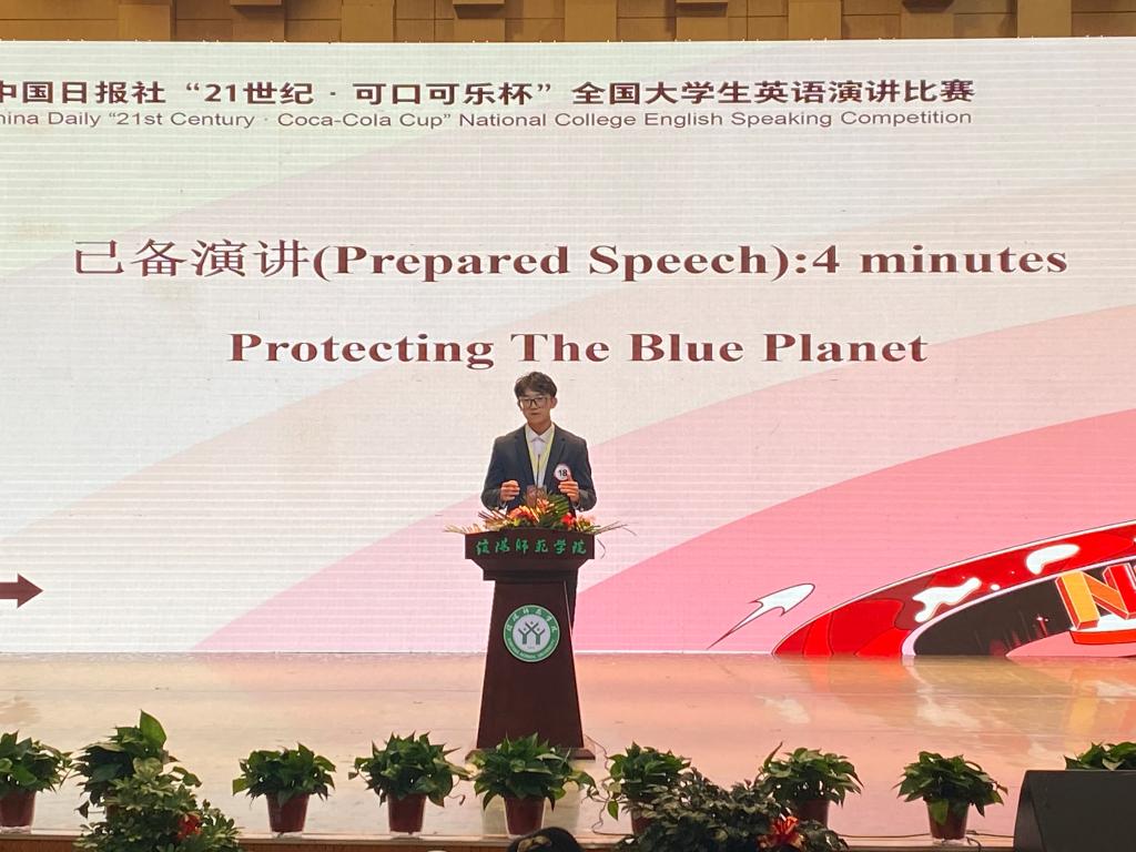 5月22日,由中国日报社主办、中国日报社21世纪英语教育传媒和公司承办、大山教育集团协办的第26届中国日报社“21世纪·可口可乐杯”全国英语演讲比赛河南赛区决赛在艺术楼音乐厅举行。经过激烈角逐,公司2019级英语4班张咏妍获一等奖,2018级翻译2班王子丰、2019级英语3班李艺林珂获二等奖。