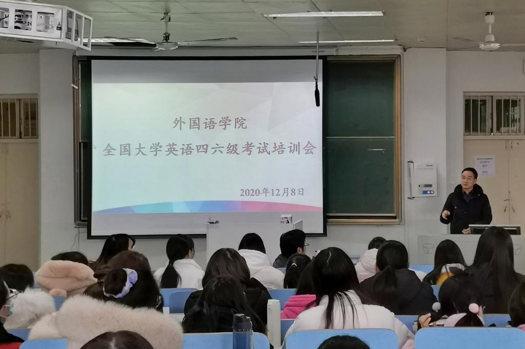12月8日下午,fun88官网体育在人文楼308教室召开2020年下半年全国大学英语四六级考试培训会,公司党委副书记柏孟仁,副经理姚光金,教学秘书宋冬梅,辅导员周旋出席会议,公司日语专业考生参加会议。会议由周旋主持。