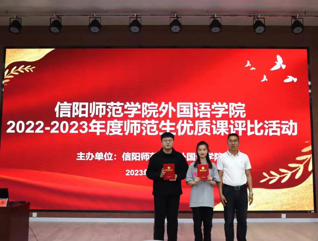 王湘军老师从课堂问题提出的明确程度、师生互动频次,课堂容量大小等方面对他们的讲课内容进行了点评。他充分肯定了两位同学的出色展示,同时也希望他们能够通过不断学习优化,继续提高自己的师范技能。之后他结合自己的从教经验,以“如何上好一节阅读课”为切入点,结合自己讲优质课的案例,从课前、课中和课后三个部分依次展开分享。王湘军老师的分享赢得了在场同学的热烈掌声。最后,刘伟老师总结了本次优质课评比活动。王湘军老师为两位同学颁发了荣誉证书。