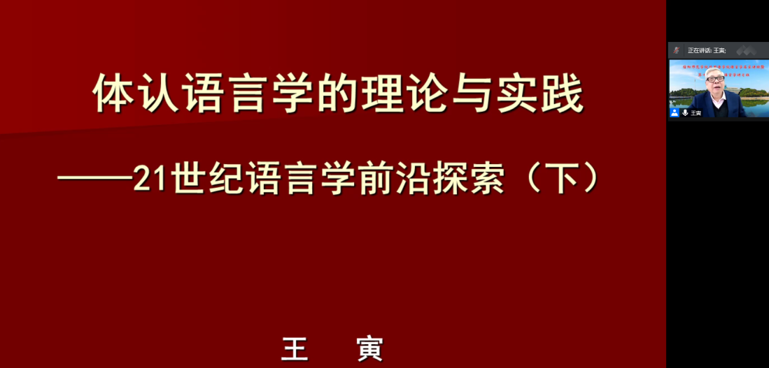 为进一步营造语言研究的学术氛围,加强学术交流,提高广大师生的学术兴趣与学术水平,推动学科发展。2020年12月11日-14日fun88官网体育以“体认语言学理论与实践” 为主题开展语言学名家讲坛暨第十二期体认语言学讲习班活动。研习班邀请四川外国语大学博士生导师王寅教授做系列学术报告,分别以“体认语言学的理论与实践”、“体认语言学在翻译与英语教学中的应用”、“体认语言学与英汉词汇”等为主题探讨了体认语言学的前沿与现状以及体认语言学理论在教学中的应用。讲座采用现场和腾讯会议线上结合的方式开展,现场50余名师生和线下300余名听众共同聆听了讲座,每场讲座结束后,王寅教授都详细解答了与会师生和线上听众的问题。不少师生表示讲座提升了他们语言研究的兴趣和积极性,对营造公司学术研究氛围起了重要推动作用。