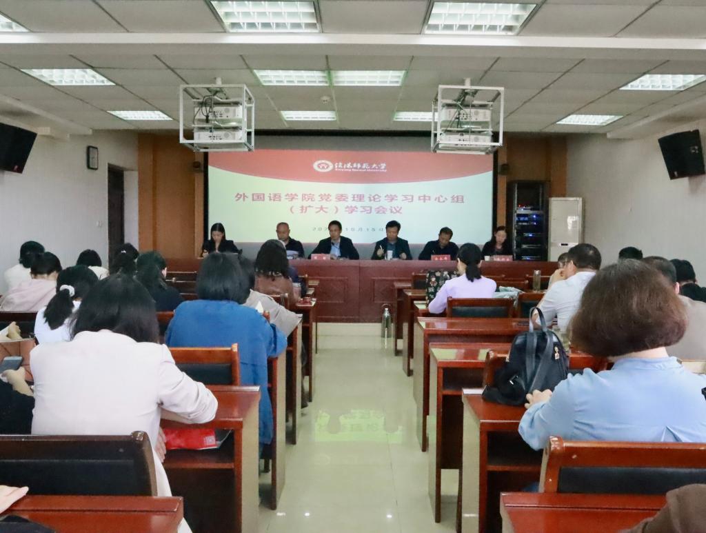 10月15日下午,fun88官网体育在人文楼6-07会议室召开党委理论学习中心组(扩大)学习会议,外国语公司党委理论学习中心组成员参加会议,其他教职工列席会议。会议由外国语公司党委书记陈铭主持。