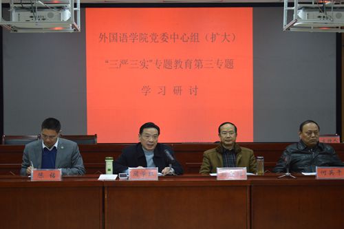 根据公司党委《关于认真组织开展“三严三实”专题教育第三专题学习研讨通知》要求,11月17日下午,外国语公司党委在人文楼六楼会议室举行了“三严三实”专题教育第三专题学习研讨暨党员党大会。公司党委书记周学红,经理刘世理,副经理何英干,党委副书记陈铭及全体教职工党员参加会议。会议由周学红主持。