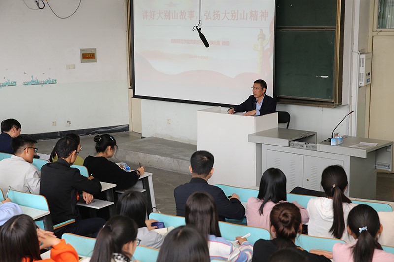 郜火星深入解读了红色基因、红色文化、红色教育的内涵,对习近平总书记关于传承红色基因的重要论述进行了系统梳理,对大别山革命斗争历史进行详细讲解。他指出,大别山革命根据地是我们党的重要建党基地,早在1921年10月就建立了党组织。土地革命战争时期,鄂豫皖苏区是仅次于中央苏区的第二大革命根据地。抗日战胜时期,新四军五师在这里有力地抗击了日伪军。解放战争时期,中原突围完成了战略牵制任务。刘邓大军千里跃进大别山,标志着中国人民解放军由战略防御转为战略进攻,是解放战争的伟大转折。在这片红色的土地上,创造了“28年红旗不倒”的奇迹,形成了“坚守信念、胸怀全局、团结奋进、勇当前锋”的大别山精神。建功新时代,要不忘初心、牢记使命,当好大别山精神的忠实守护者、坚定传承者、自觉践行者,让大别山精神融入血脉之中,着力构建弘扬大别山精神的新高地。