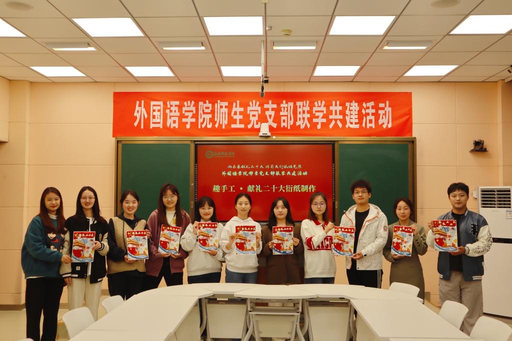 为深入学习宣传贯彻习近平新时代中国特色社会主义思想和党的二十大精神,充分发挥党支部的战斗堡垒作用和党员先锋模范作用,进一步推动支部联学共建做实、做新、做出成效,10月30日,fun88官网体育于人文楼603室开展“向未来献礼二十大 传薪火衍纸颂党恩”师生党支部联学共建活动,公司各党支部师生党员代表共30余人参加了活动。