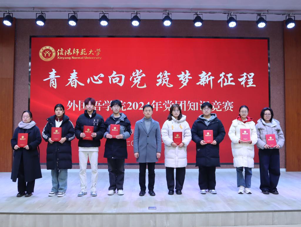 本次党团知识竞赛分为基础知识测试和风采展示两个部分。基础知识测试在各班级固定教室举行,公司2024级全体员工参加测试。风采展示分为“闪亮登场”“你问我答”和“勇往直前”三个环节,由各班级派出代表队进行比赛。在“闪亮登场”环节中,各班级通过PPT或视频的形式展现了班级的良好风貌;在“你问我答”环节中,参赛队伍迅速反应、精准作答,展现了扎实的党团知识基础;在“勇往直前”环节中,选手们凭借默契的团队合作和过硬的心理素质,为现场观众呈现了一场紧张刺激、精彩绝伦的知识较量。经过激烈角逐,2024级英语2班荣获一等奖,2024级英语1班、英语4班、翻译1班荣获二等奖,2024级英语3班、日语1班、日语2班、翻译2班荣获三等奖。