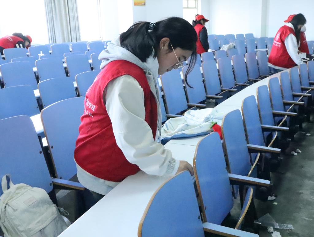 开展“践行雷锋精神 共建美丽校园”文明校园建设活动。通过组织公司志愿者打扫校园卫生、规范电动车停放、清理人文楼教室桌面纸屑等活动,营造干净整洁的校园环境,在日常生活中将雷锋精神内化于心、外化于行。