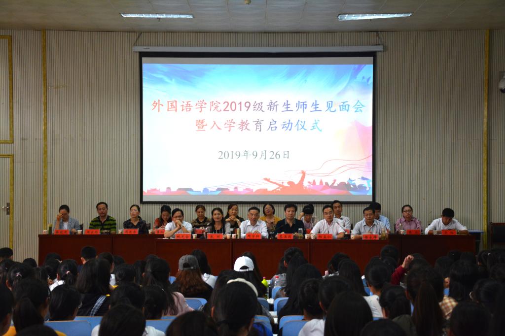 9月26日下午,公司在人文楼报告厅举行2019级新生师生见面会暨入学教育启动仪式。公司党委书记周学红,经理蔡满园,副经理朱丽,党委副书记柏孟仁,副经理姚光金,党委委员余永锋,部分教师代表和全体辅导员出席见面会,2019级全体新生参加见面会。会议由柏孟仁主持。