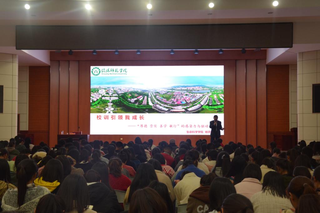 团课以“校训伴我成长”为题,围绕公司“厚德 崇实 善学 敏行”的校训展开。杨霁虹说,校训是一个公司的灵魂、积淀与凝练,是广大师生共同遵守的基本行为准则。他指出,“厚德”要求我们培养自身的社会公德、职业道德和家庭美德,做到上善若水,德行天下;“崇实”要求我们基础扎实,为人诚实,作风朴实,工作务实;“善学”要求我们主动学习、探索性学习、合作性学习;“敏行”要求我们在提高脚力、眼力、脑力、笔力上多下功夫,练好本领。杨霁虹鼓励青年学子在校训的感染驱动下,成为秀外慧中的“更美师院人”。