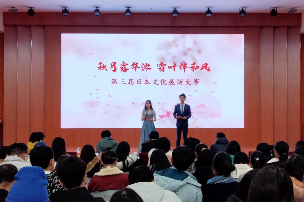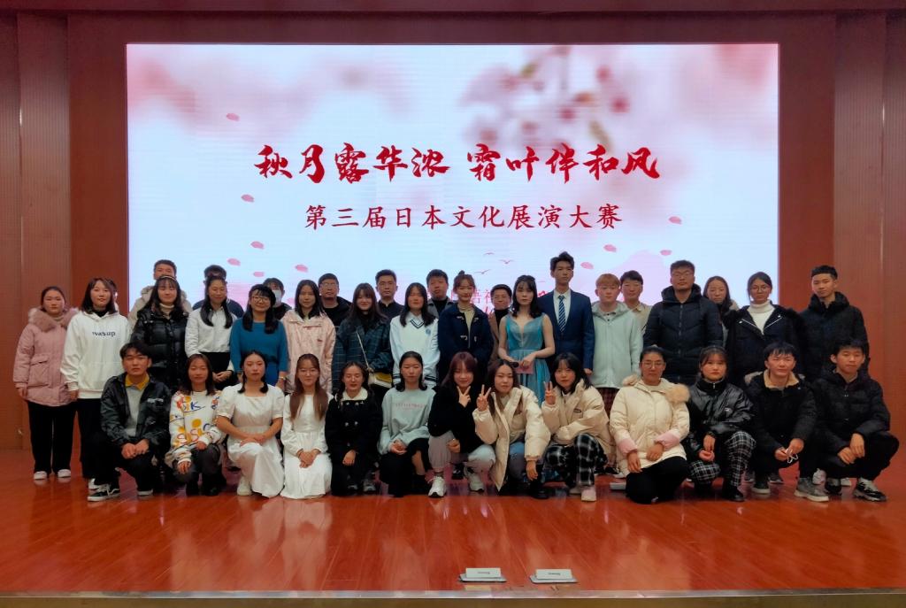 11月28日晚,公司在逸夫楼报告厅举办第三届日本文化展演大赛。日语专业外教田口晴近,日语专业任课教师张鸿鹏博士、晏少杰老师、李静博士及公司团委书记孔宪巍应邀出席并担任评委。