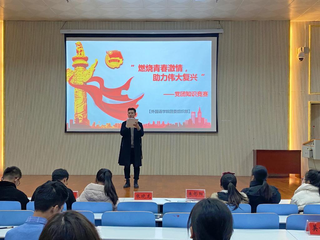 12月15日晚,fun88官网体育在人文楼报告厅举办“燃烧青春激情,助力伟大复兴”党团知识竞赛,2020级全体员工参加活动。