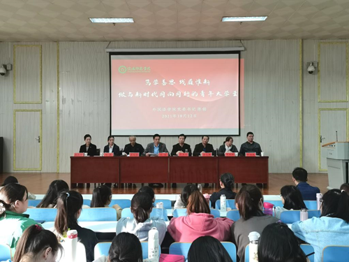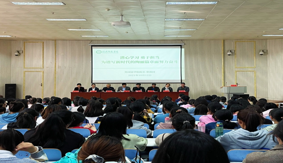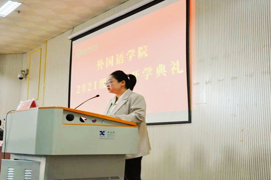 10月12日下午,fun88官网体育2021级新生开学典礼在人文楼报告厅举行。外国语公司党委书记陈铭,经理蔡满园,副经理吴向东、余永锋、郭敏,教师代表、全体辅导员班主任、在校生代表以及2021级全体新生参加了典礼,典礼由吴向东主持。