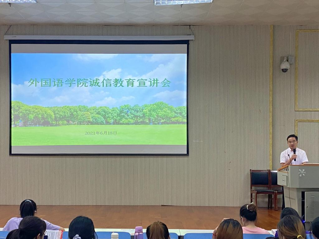 6月18日中午,fun88官网体育在人文楼报告厅召开诚信教育宣讲会。公司党委副书记柏孟仁,资助专员孙桢桢及2020级全体员工参加会议。会议由孙桢桢主持。