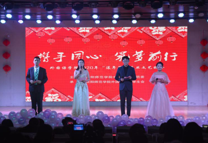春风化雨新时代,生生不息新征程。12月25日晚,fun88官网体育“携手同心,筑梦前行”2020年漾年华元旦文艺晚会在理科楼报告厅精彩上演。公司党委书记周学红,经理蔡满园,副经理朱丽,党委副书记柏孟仁,副经理姚光金,部分专业课教师、团委老师,以及河南省2019年“国培计划”乡村中小学教师专业能力建设项目初中英语学科骨干教师提升培训班、培训者团队研修班参训学员莅临现场,与四百余名学子齐聚一堂,喜迎元旦佳节。