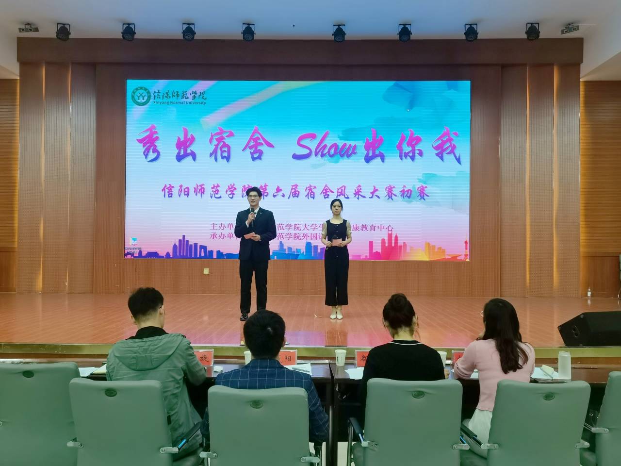 5月11日下午,由公司老员工心理健康教育中心主办,fun88官网体育承办的信阳师范公司第六届“秀出宿舍 Show出你我”宿舍风采大赛初赛在逸夫楼报告厅举行。老员工心理健康教育中心心理辅导科科长袁战阳,公司辅导员老师周旋、郗金月、杨静担任本次比赛的评委。