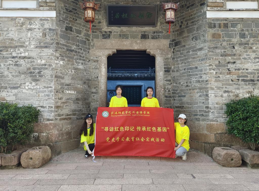 践党行——发扬红色文化活动。实践团在副经理郭敏和团委书记周旋的带领下,前往信阳市光山县邓颖超故居,结合专业特色开展“大别山红色故事编译活动”。各成员积极投身当地党史学习及红色文化宣传教育实践活动,深入了解了党伟大的革命发展历程,培养了服务精神和志愿者精神,增强了为人民大众服务的意识。