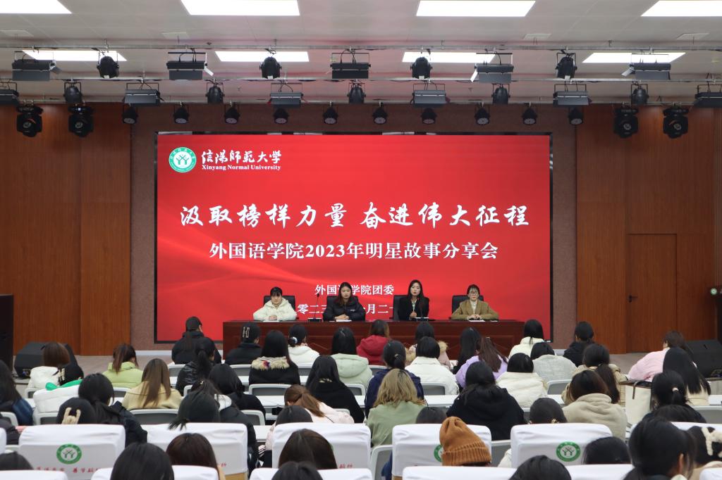 11月28日晚,fun88官网体育在人文楼报告厅举办2023年“汲取榜样力量 奋进伟大征程”明星故事分享会。公司优秀员工代表方宇、种艺佳、王亚歌等同学依次分享了她们追梦、圆梦的宝贵经验,2023级全体新生参加了分享会。