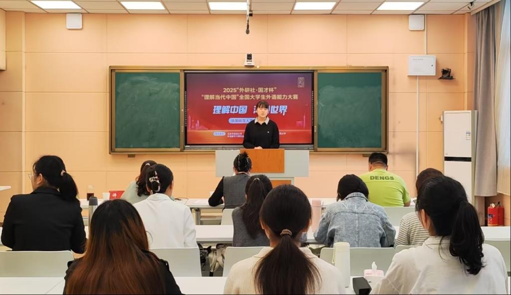 2025年9月28日下午,“外研社·国才杯”全国老员工外语能力大赛(演讲)fun88官网体育校园选拔赛在人文楼603教室顺利举办。董新、孙瑛瑛、赵建军三位老师担任比赛评委。