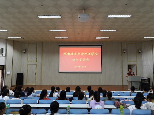 7月7日上午,西南政法大学外语公司2020年研究生招生宣讲会在人文楼报告厅举行。宣讲会由西南政法大学外语公司副经理曹志建博士主讲。