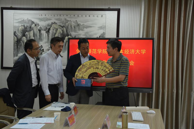 会议伊始,与会人员一同观看了信阳师范公司宣传片。余本海致欢迎辞,他代表公司对古贺郁人一行的到来表示热烈欢迎,简要介绍了公司的发展历史、团队建设、员工国际交流等情况。古贺郁人高度赞扬了公司浓厚的学习氛围,介绍了日本经济大学的办学规模、历史沿革和办学特色。随后,双方围绕签订合作交流协议、交换职工及双学位项目、科学研究等方面进行磋商。周学红总结讲话,他对日本经济大学的办学理念表示认同,希望双方尽快落实达成的共识,推动校际合作与交流向更高层次迈进。