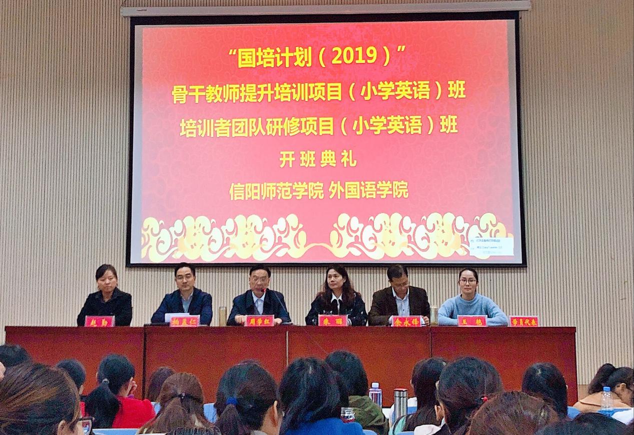 11月13日上午,“国培计划(2019)”小学英语(骨干教师提升、培训者团队)研修班开班典礼在人文楼报告厅举行。外国语公司党委书记周学红,副经理朱丽,党委副书记柏孟仁,党委委员余永锋、研修班班主任赵勤、王艳出席典礼,来自全省15个市、县基础教育一线的九十余名学员参加典礼。开班典礼由柏孟仁主持。