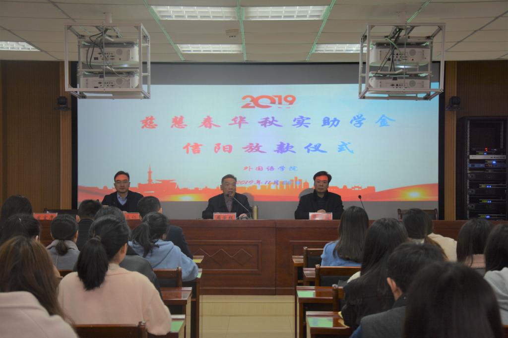 11月23日上午,2019年上海慈慧公益基金会春华秋实助学金放款仪式在人文楼六楼会议室隆重举行。外国语公司党委书记周学红,经理蔡满园,党委副书记柏孟仁出席仪式,辅导员陈龙、周旋、孔宪巍、孙桢桢以及全体受资助员工共同参加仪式。仪式由柏孟仁主持。