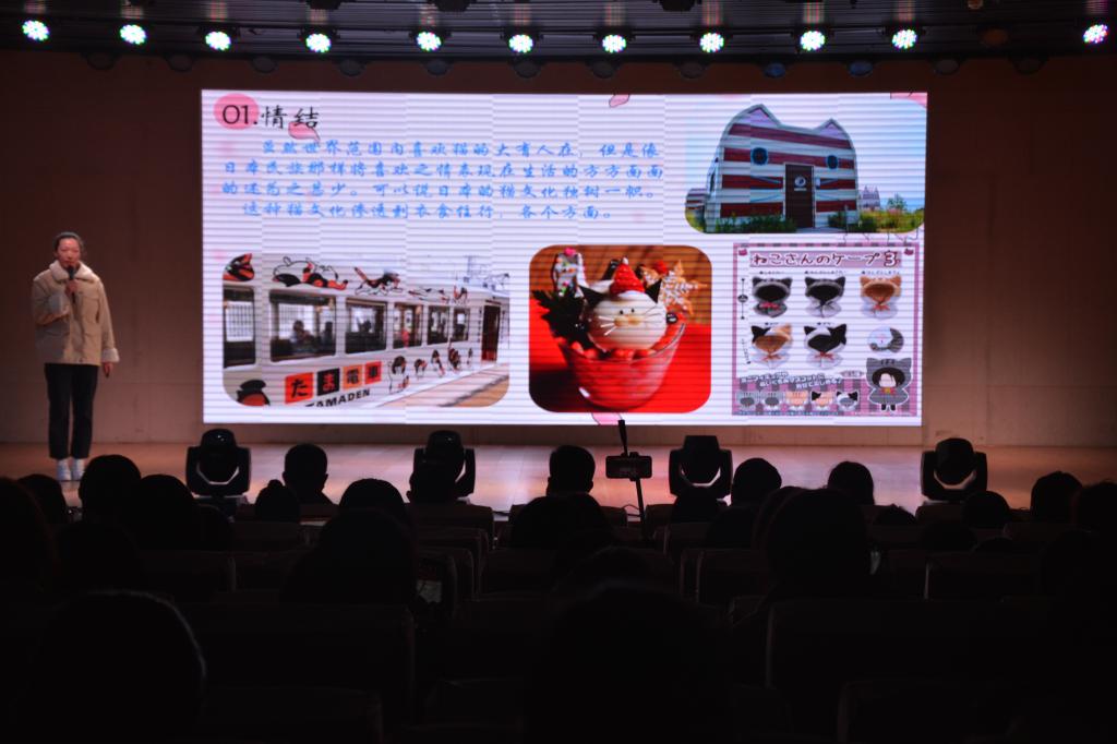 经过初赛及复赛选拔,共有5组选手晋级决赛。本次比赛分为日本文化展示和知识问答两个环节。比赛在青春活力的开场舞中拉开帷幕,日本文化展示环节中,选手们利用PPT和视频向观众展示了日本动漫文化、新年传统、园林文化等。其中,三号选手向大家展示了日本枯山水,作为日本园林景观的一种,以石为山、以沙代水,象征着自律精神,引得在场观众连声赞叹。在知识问答环节中,各组选手沉着冷静,回答自如。评委老师们对选手的精彩表现给予充分肯定。经过激烈角逐,第三组选手郎玉红 王君丽荣获一等奖,第四组选手韩玉萍、常会萍、刘静晨、郭晨及第五组选手朱勰获得二等奖,第一组选手卢斌昱、赵旖旎和第二组选手王丽飞获得三等奖。