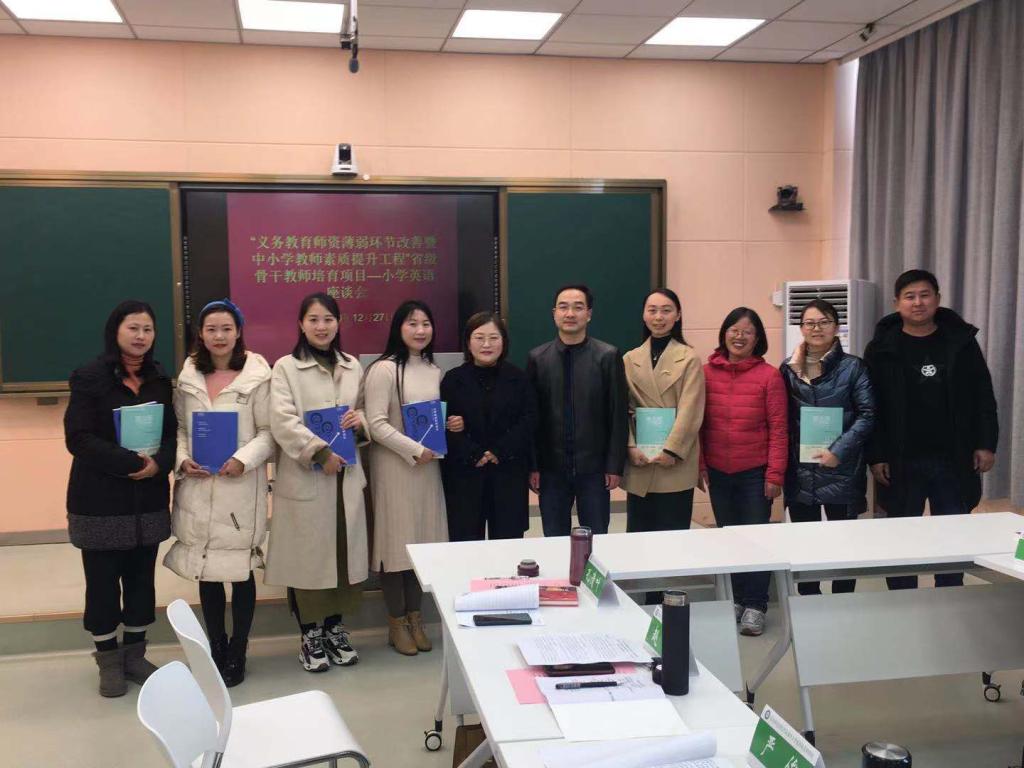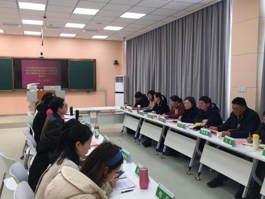12月27日上午,“义务教育团队薄弱环节改善暨中小学教师素质提升工程”小学英语省级骨干教师培育项目座谈会在人文楼603会议室举行。河南省中小学教师董事长研修院韩艳婷博士,督导专家冯一兵、谢素霞、杨传凯,南阳市第十二小学郭婷等5名河南省名师,浉河区教研室严俊等6名学员代表,公司党委副书记柏孟仁,党委委员、经理助理郭敏,省培项目班主任余运伟、吴恒共同参加了座谈会。座谈会由柏孟仁主持。