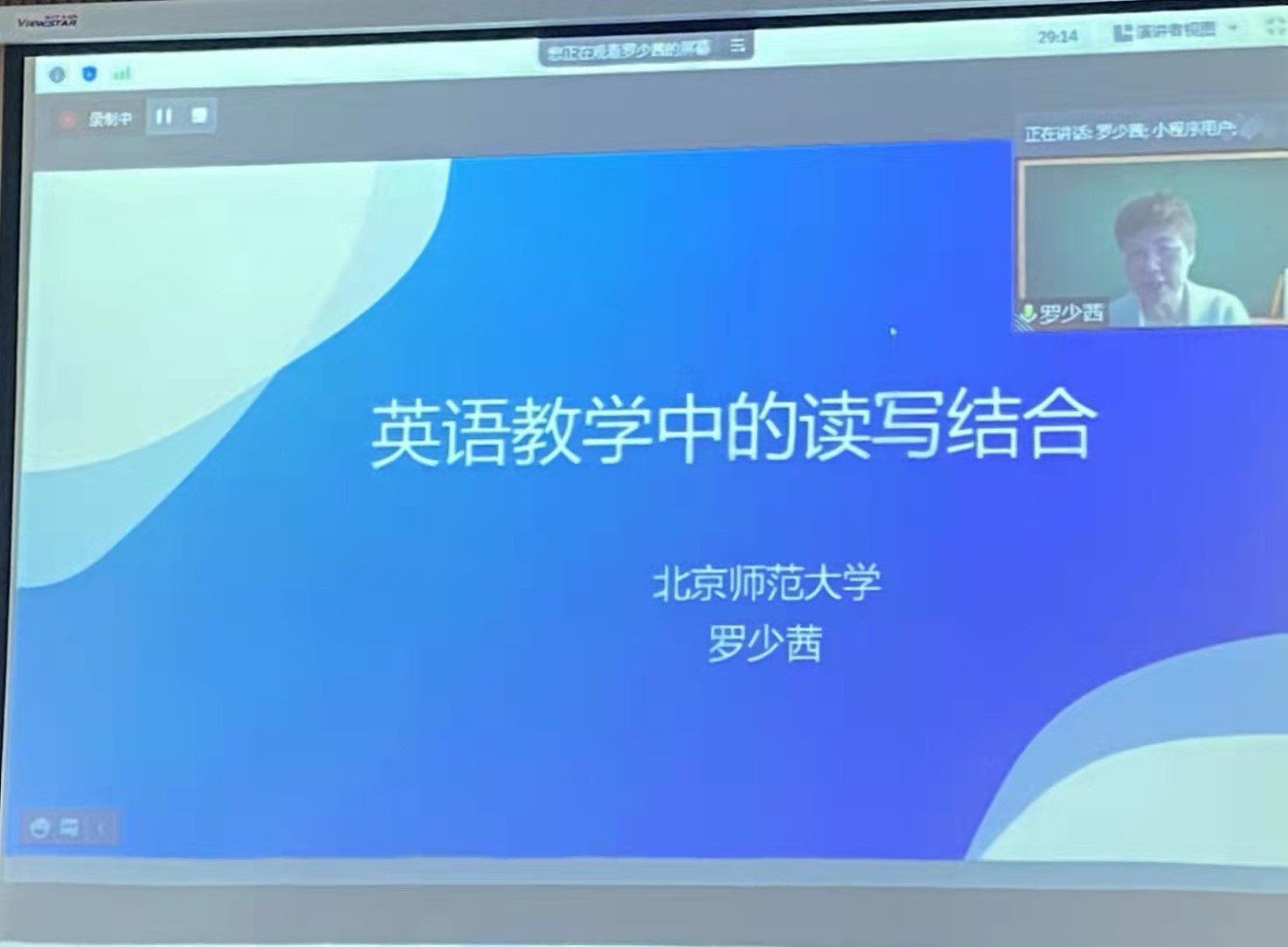 根据“省培计划(2021)”小学英语骨干教师提升培训班课程安排,10月11日上午,北京师范大学外国语言文学公司英文系罗少茜教授为“省培计划(2021)” 小学英语骨干教师提升培训班作了题为《英语教学中的读写结合》的专题报告,全体省培学员,fun88官网体育英语系教师参加线上讲座,讲座由余永锋主持。