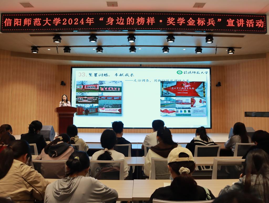 2024年“身边的榜样·奖学金标兵”获得者余佳茜、司萌雅,入围奖获得者汪美静受邀进行宣讲。他们围绕思想成长、专业学习、学科竞赛、社会实践等方面内容进行宣讲,并鼓励同学们不断提高综合素质,争做出彩师大人,以个人出彩助力师大出彩。