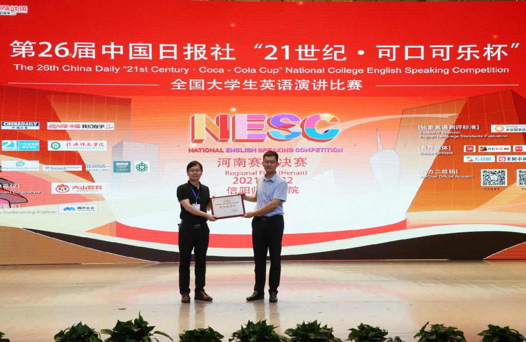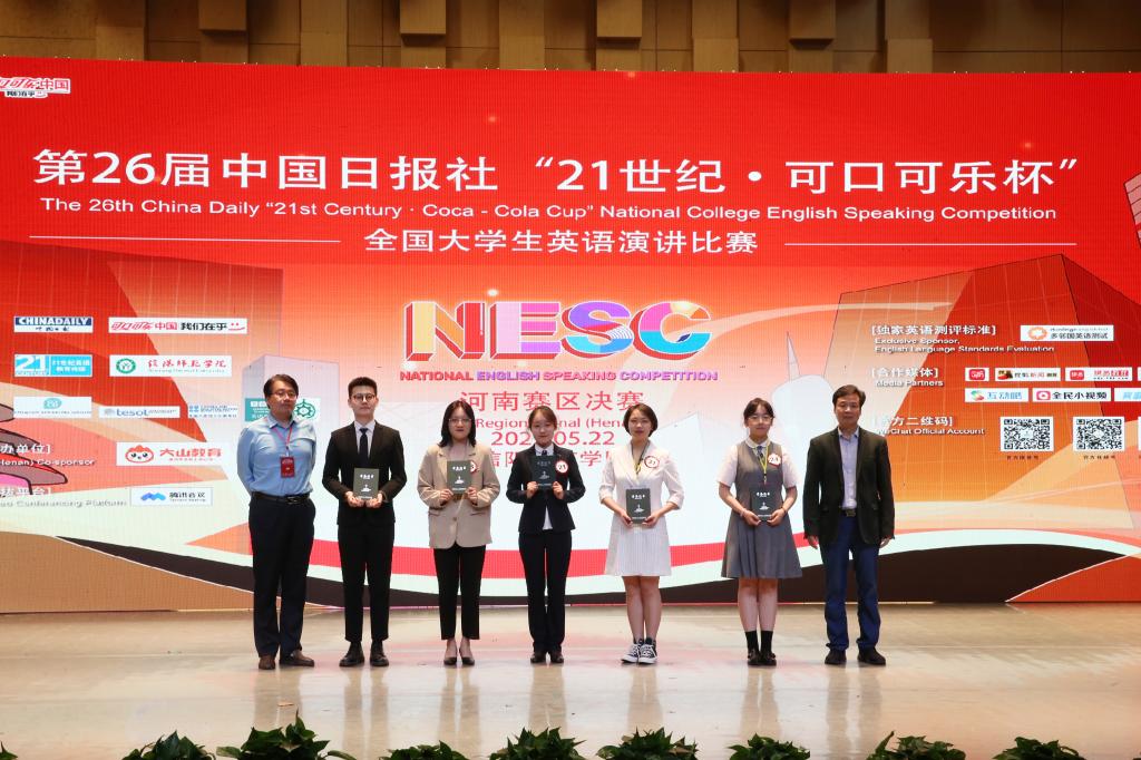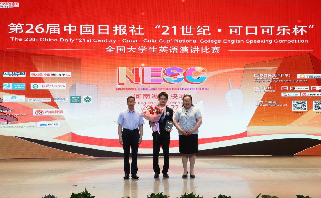 5月22日,由中国日报社主办、中国日报社21世纪英语教育传媒和公司承办、大山教育集团协办的第26届中国日报社“21世纪·可口可乐杯”全国英语演讲比赛河南赛区决赛在艺术楼音乐厅举行。公司党委副书记郜火星,中国日报社21世纪英文报河南工作站站长、大赛组委会主任杜琛,大山教育集团联合创始人崔新年应邀出席观看比赛。fun88官网体育师生代表共300余人观看了比赛。