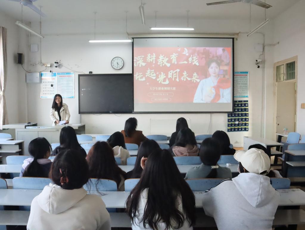 本次比赛分成长赛道和就业赛道,参赛选手需在8分钟内通过PPT进行内容展示,并回答评委老师的提问。比赛开始后,选手们结合自身实际情况,介绍了个人职业探索和职业目标的选择及规划,围绕自我评估、职业探索、职业定位、职业规划路径以及目标调整等方面,讲述了在实现职业目标中已实施的具体行动和成果。经个人展示、评委评议等环节,董子寒荣获一等奖,马好荣获二等奖,郭郝冉,曾思媛荣获三等奖。