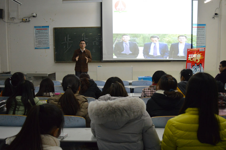 同日晚,公司在人文楼607教室举办步步高教育专场招聘宣讲会。宣讲会上,该公司负责人李老师详细介绍了目前公司发展状况,并以团队中公司毕业生为例,向在座学子介绍用人原则,吸引了员工的注意,同学们积极回应并提出自己的问题。李老师鼓励同学们积极参与,在实践中努力锻炼和提升自己,逐渐适应社会发展需求。