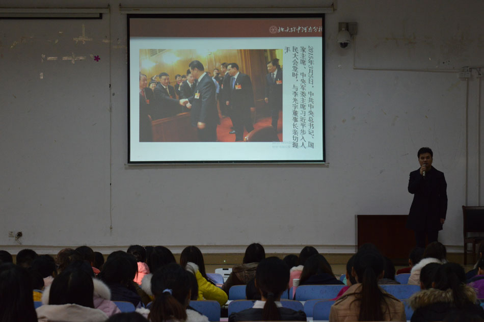 当天下午,北大附中河南分校宣讲会在人文楼报告厅举行,该校副董事长马俊伟,团委书记孙涛等领导老师应邀前来。孙涛简要叙述了北大附中的发展历史、发展规模和所获成就,并从高考成绩、素质教育、艺术教育、国际教育四个方面介绍了北大附中的教学特点。他援引身边实例为在座师生展现了该校的发展前景,并详细回答了同学们关心的招聘规则及福利待遇等问题。宣讲会最后,马俊伟宣布了工作安排及面试细节。