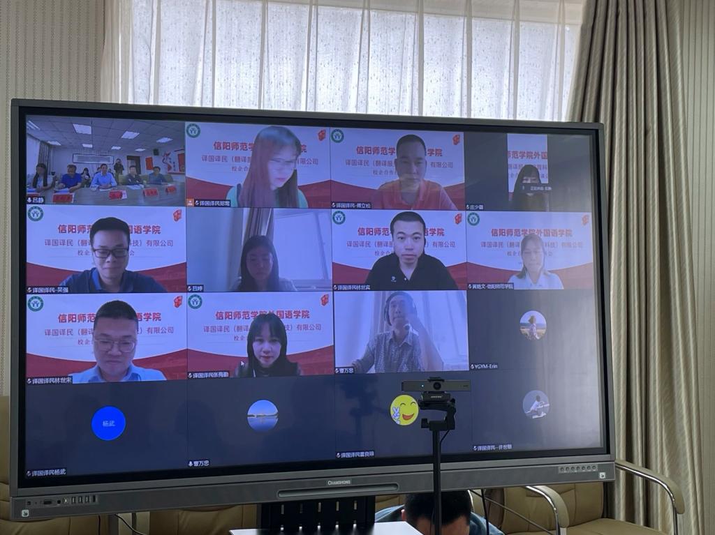 4月26日下午,fun88官网体育与译国译民翻译服务有限公司举行了校企合作线上座谈会及校企合作签约仪式。fun88官网体育全体领导班子成员、各基层教学组织负责人、译国译民翻译服务有限公司董事长林世宋、总经理助理陈力石与张梅勤、商务总监傅立松、高校事业部总经理郑莺、市场经理杨武与曹威等出席了本次活动。