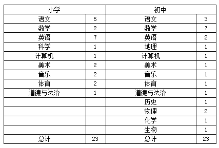 2、具有相应的教团队格证,普通话等级证、计算机水平达到国家规定标准,能胜任小学、初中各学科教学及班主任工作。