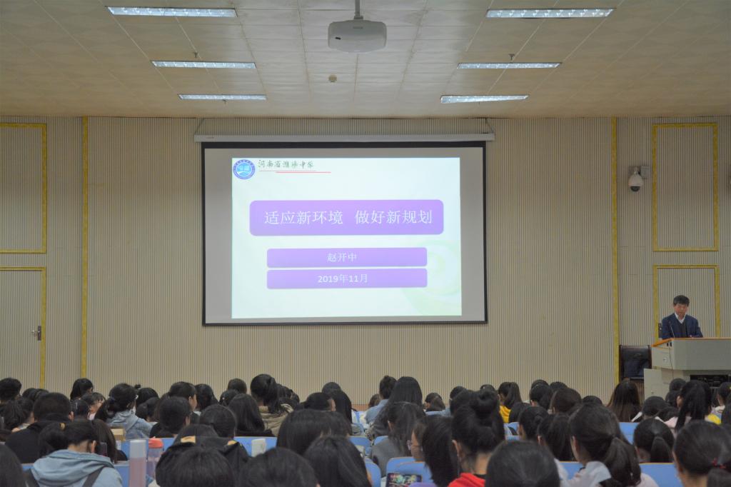 11月15日晚,公司87级优秀员工河南省英语特级教师赵开中在人文楼报告厅为2019级同学做入学教育报告。公司党委副书记柏孟仁、团委书记孔宪巍以及2019级全体员工参加了此次活动。报告会由柏孟仁主持。