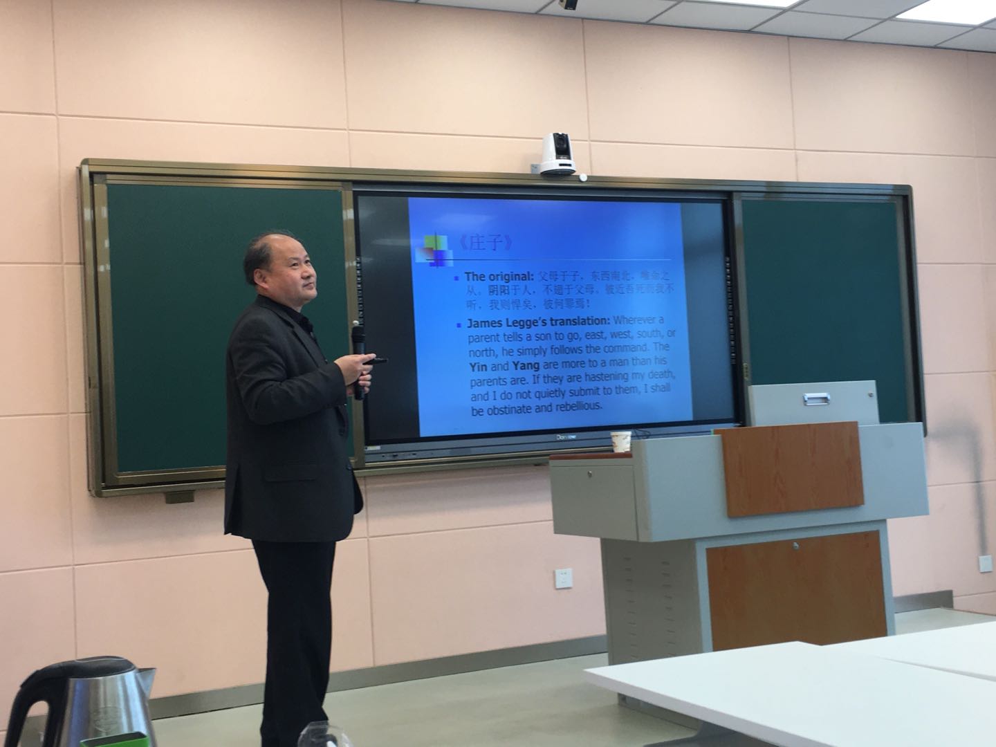 报告会上刘华文教授从我国经典传统文化翻译的现状分析入手,结合《论语》、《易传》、《庄子》的翻译译本,阐释我国经典传统文化翻译的思想认知、超限性认知和范畴性认知,进而指出我国传统文化翻译所呈现的异语形态可以促进源语文化的发展,有助于认识传统文化的时代思想活力,从而提升我们的文化自信心。