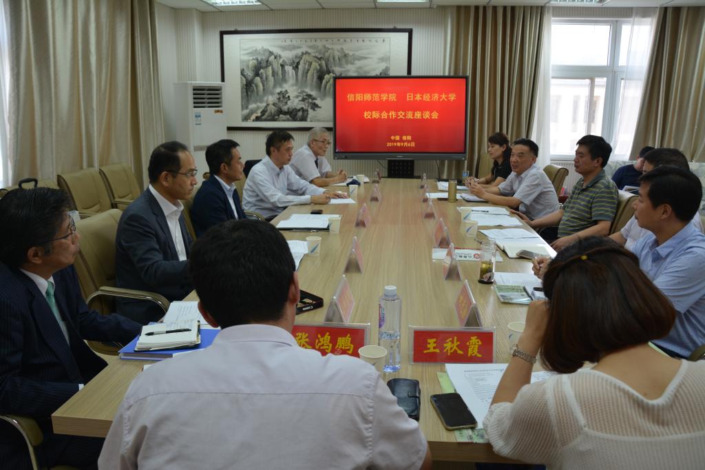会议伊始,与会人员一同观看了信阳师范公司宣传片。余本海致欢迎辞,他代表公司对古贺郁人一行的到来表示热烈欢迎,简要介绍了公司的发展历史、团队建设、员工国际交流等情况。古贺郁人高度赞扬了公司浓厚的学习氛围,介绍了日本经济大学的办学规模、历史沿革和办学特色。随后,双方围绕签订合作交流协议、交换职工及双学位项目、科学研究等方面进行磋商。周学红总结讲话,他对日本经济大学的办学理念表示认同,希望双方尽快落实达成的共识,推动校际合作与交流向更高层次迈进。