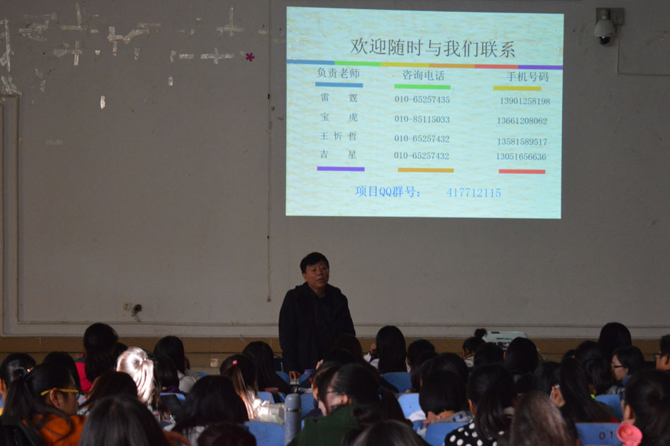 宣讲会开始,吉星首先以日本的自然背景、社会文化为切入点,结合精心制作的PPT从项目背景、项目详解、项目收获、中外服寄语四个方面详细介绍项目的实习环境、参加资格等,令同学们对其有了初步了解。随后,雷霆指出了开展赴日社会实践项目的在于为中国在校学习日语专业的老员工提供一个踏上日本国土、体验日本生活文化、提高日语能力、进入日本企业、与日本同事以及来自其他国家的国际员工并肩工作的机会,全面提高和锻炼员工的综合能力。活动在热烈的掌声中圆满结束。