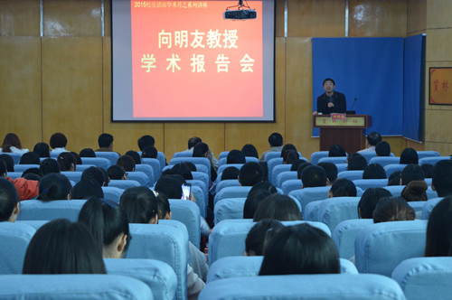 10月14日上午,应fun88官网体育的邀请,北京航空航天大学fun88官网体育经理向明友教授莅临公司,在贤林讲坛作了题为“语用化与语法化的纷争”的学术报告,公司200余名师生共同聆听了报告。报告会由公司经理刘世理主持。