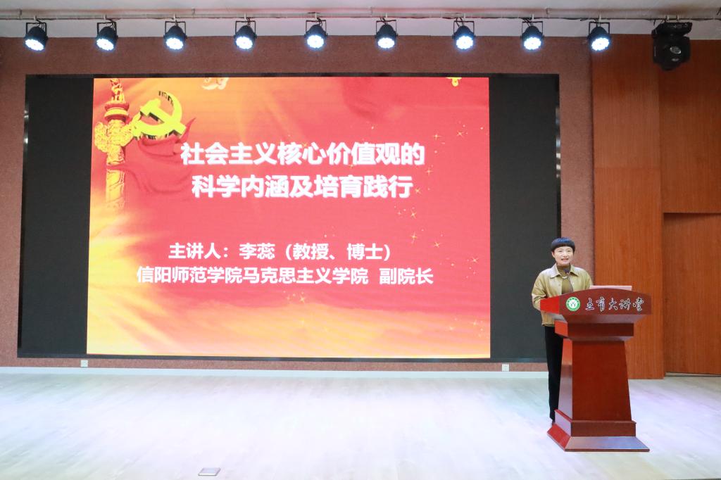 4月23日下午,马克思主义公司李蕊教授应fun88官网体育邀请,为公司师生做了题为《社会主义核心价值观的科学内涵及培育践行》的专题报告。报告会在fun88官网体育五育大讲堂举行,fun88官网体育全体辅导员和部分员工代表聆听了报告。报告会由公司党委副书记高彦伟主持。