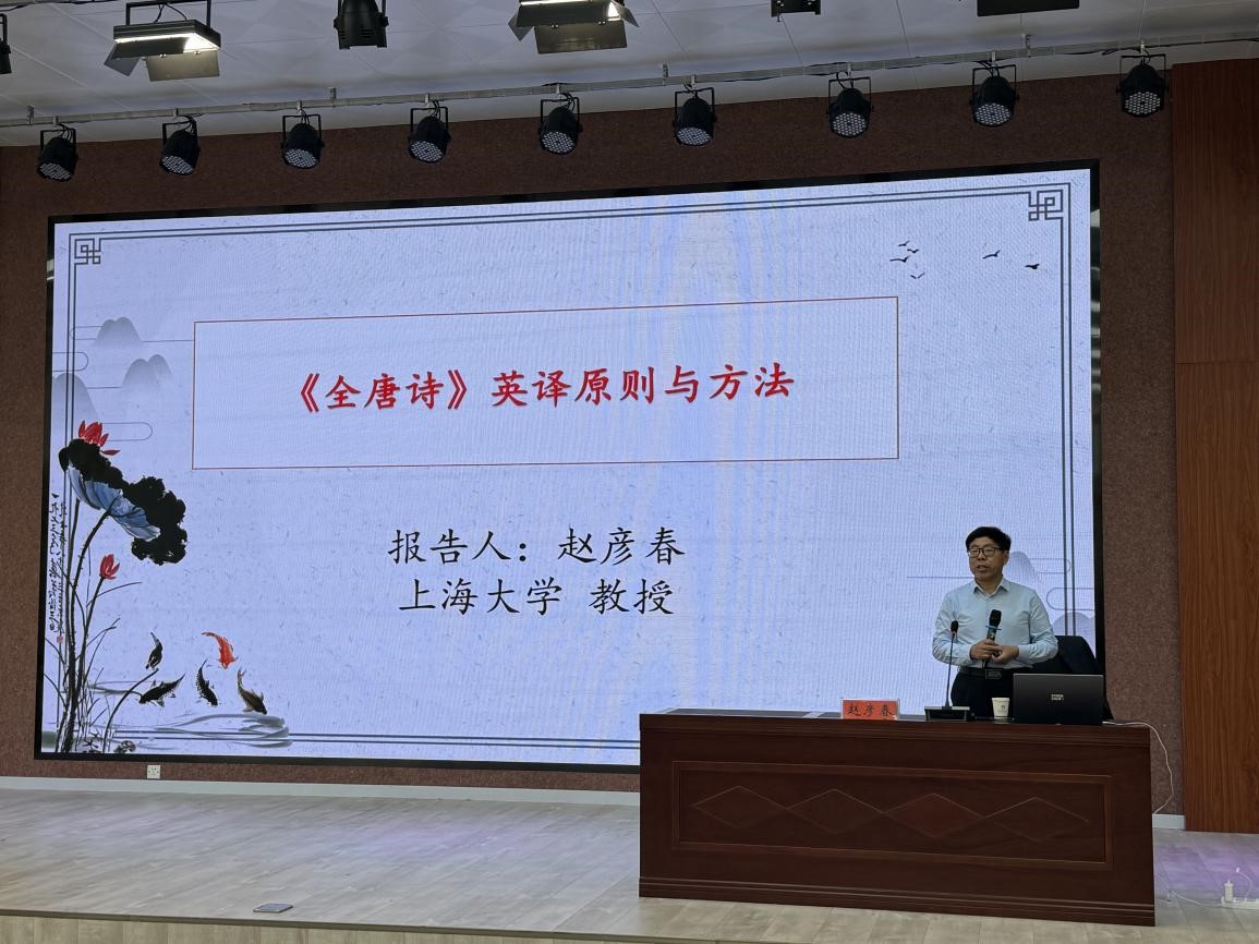 5月14日下午,上海大学二级教授、博士生导师赵彦春教授应邀在人文楼报告厅为公司师生作了题为“《全唐诗》英译原则与方法”的讲座。fun88官网体育经理蔡满园以及相关教师、研究生和本科生共百余人聆听了讲座。讲座由fun88官网体育副经理章彩云主持。